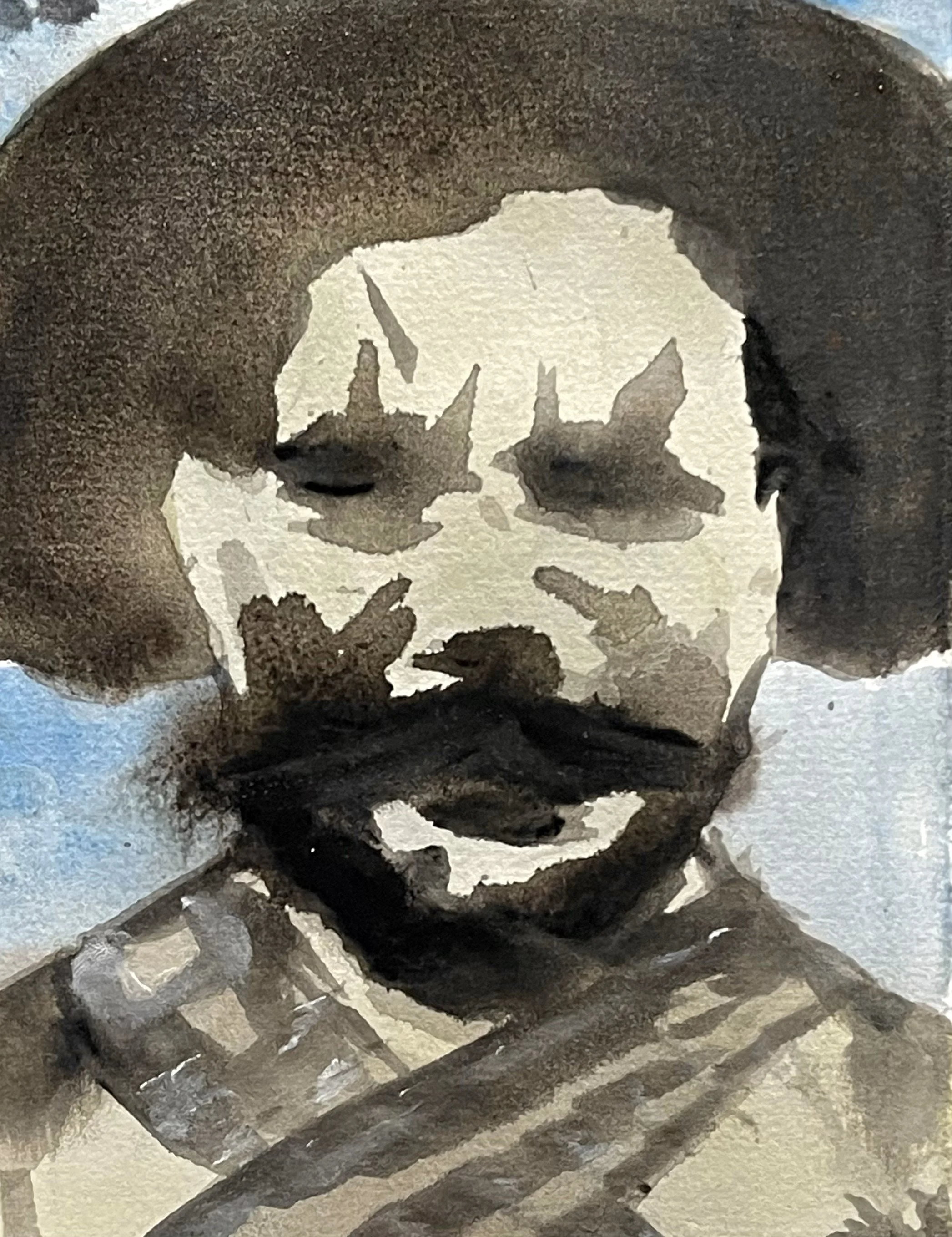 Zilo The Lizard-Man, Graphite on Postcard, 2023
